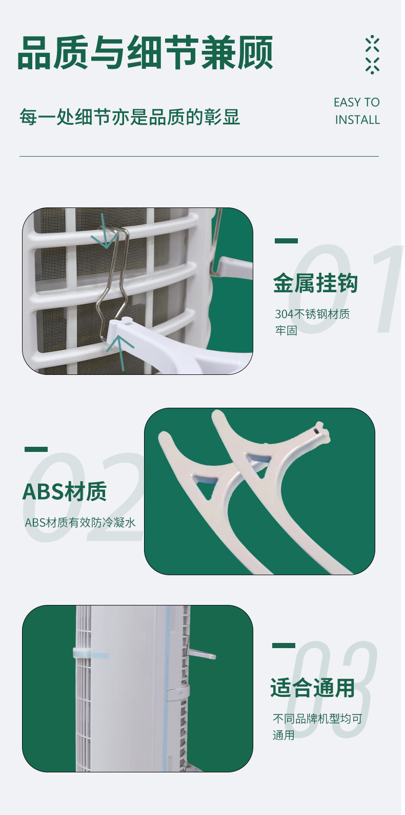 空调挡风板又叫做空调导风板,是一种利用导风板来引导风向流向的工具,家庭用空调挡风板就是一种家庭使用引导风向的工具,主要是针对家里有老人小孩使用。那么空调挡风板买了之后怎么安装呢一、空调导风板产品零部件:某品牌空调导风板的零部件主要有中导风板1个,两侧导风板2个,左右支架分别1个,左右挂板