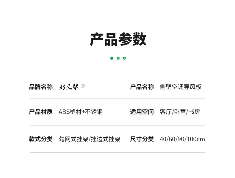 空调挡风板又叫做空调导风板,是一种利用导风板来引导风向流向的工具,家庭用空调挡风板就是一种家庭使用引导风向的工具,主要是针对家里有老人小孩使用。那么空调挡风板买了之后怎么安装呢一、空调导风板产品零部件:某品牌空调导风板的零部件主要有中导风板1个,两侧导风板2个,左右支架分别1个,左右挂板